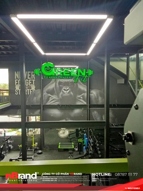 nBrand thi công bảng hộp đèn 3m siêu sáng cho phòng gym Green Fit
